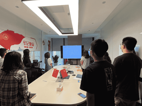 而后,,全体党员一起重新学习了解了目前的入党流程要求,,,各支部也将在后续工作中进一步发挥支部职能,,做好发展党员工作。。最后,,全体党员面向党旗,,,重温入党誓词。。。。