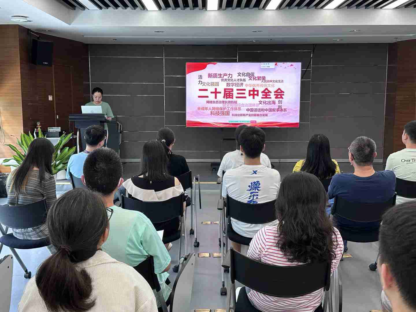 与会人员深入学习《决定》内容。。党的二十届三中全会提出必须增强文化自信,,,,发展社会主义先进文化,,弘扬革命文化,,,,传承中华优秀传统文化,,,加快适应信息技术迅猛发展新形势,,构建更有效力的国际传播体系,,,这为广大文化产业工作者指明了奋斗方向。。。