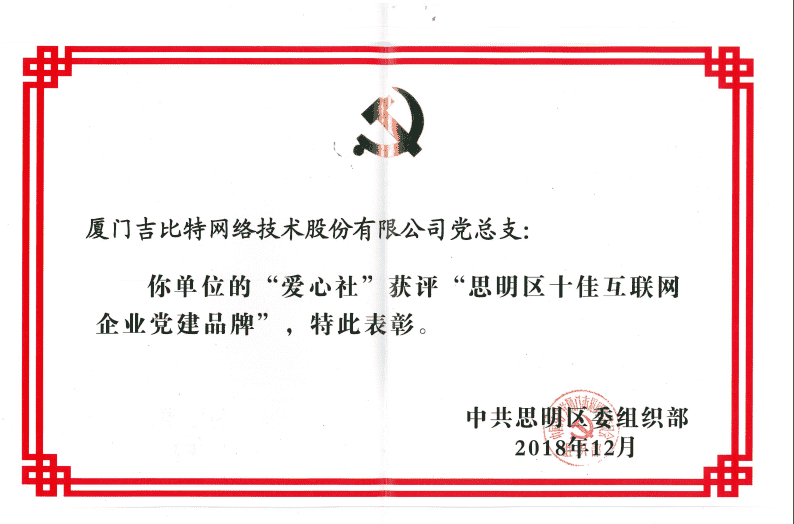 经初审评选、、网络评选和专家评审等环节,,,,"厦门亚星管理网络技术股份有限公司党总支-爱心社" 从全区28个参评党建品牌中脱颖而出,,,获评"思明区十佳互联网企业党建品牌"。。